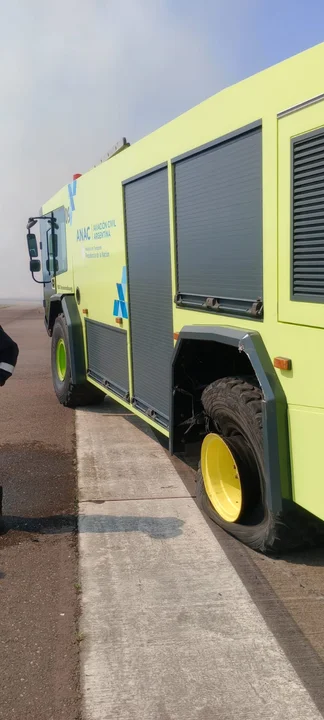 Mientras los equipos trabajaban intensamente para controlar el incendio, uno de los camiones autobomba sufrió un desperfecto mecánico que complicó las tareas. Según informaron, una de sus ruedas —que presentaba desgaste por el tiempo de uso— se pinchó y terminó explotando justo cuando el vehículo atravesaba la pista para dirigirse hacia el foco ígneo.