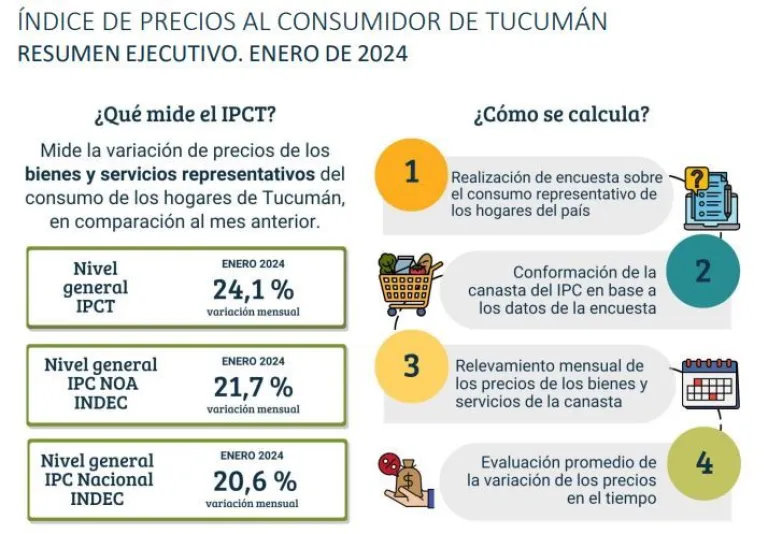 La Dirección de Estadísticas de la provincia informó que el Índice de Precios en Tucumán fue del 24.1% durante enero, cifra que supera en casi cuatro puntos al índice nacional establecido por el INDEC, que fue del 20.6%.