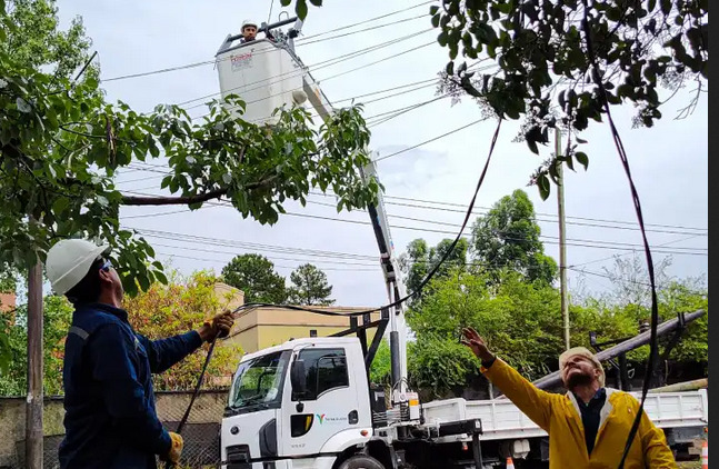 Paralelamente, los trabajadores de mantenimiento de iluminación reemplazan postes y cables caídos en los puntos más críticos para devolver el suministro eléctrico a los barrios hostigados por los fuertes vientos.
