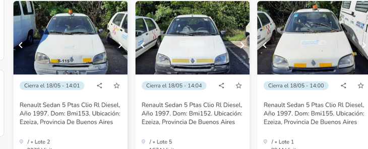 Se trata de autos y camionetas de marcas como Peugeot, Ford y Volkswagen. La base de los precios de los diversos modelos es de $5.000 y llegan hasta los $315.000, con algunos valores intermedios de $40.000 y $78.000. La subasta se iniciará el miércoles 18 de mayo desde las 14:00hs si bien la inscripción debe realizarse con anticipación.