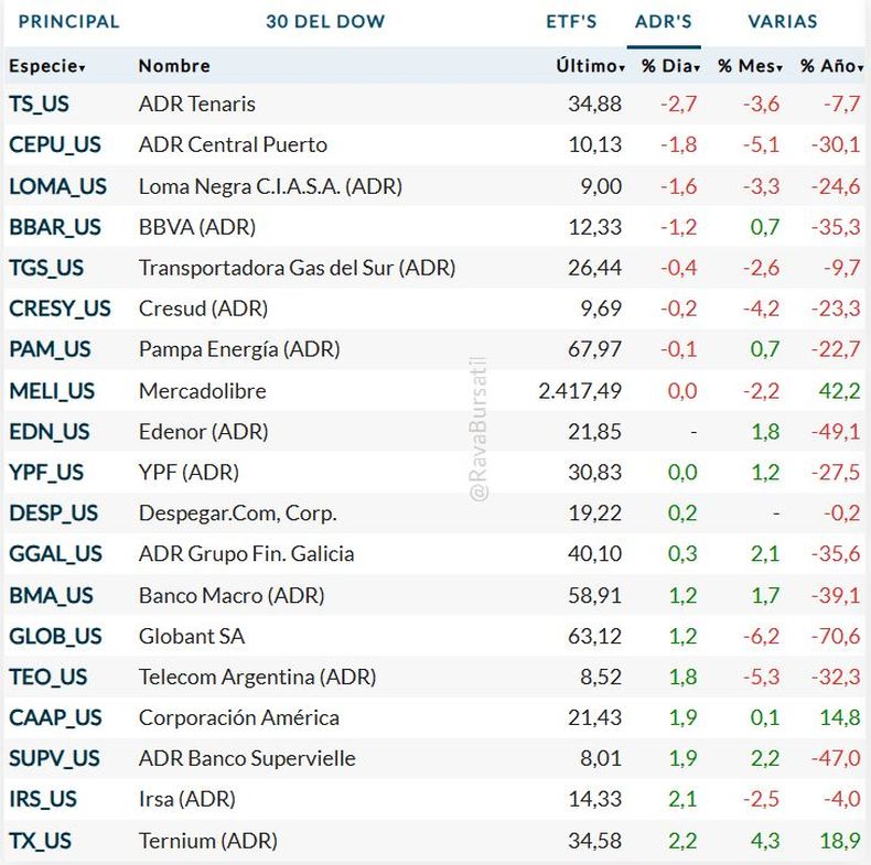 En Wall Street, los ADRs argentinos también presentaron movimientos mixtos con un volumen relativamente bajo. Las subas más destacadas fueron las de Grupo Supervielle (+1,9%), IRSA (+1,9%) y Telecom (+1,8%), mientras que Central Puerto y Loma Negra registraron descensos de 1,8% y 1,6% respectivamente.