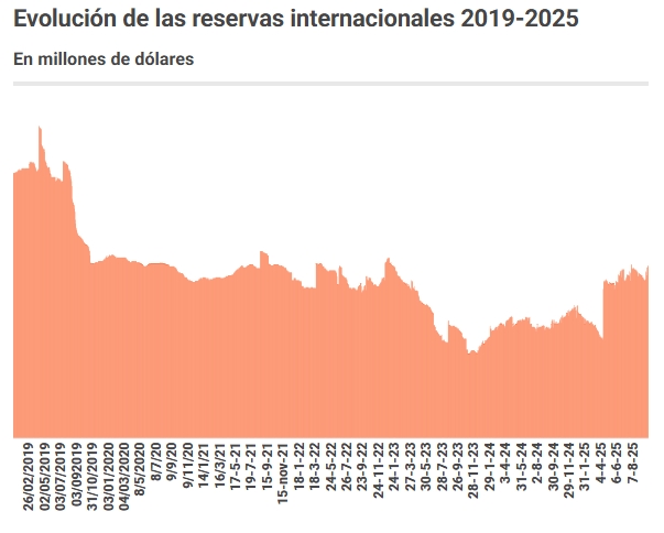 El mismo informe explicó que estas operaciones incidieron directamente en las reservas netas, que se ubicaron en USD 7.500 millones negativos, mientras que las reservas brutas mostraron un aumento de casi USD 1.500 millones gracias al crecimiento de los depósitos privados en dólares, lo que elevó los encajes en moneda extranjera.