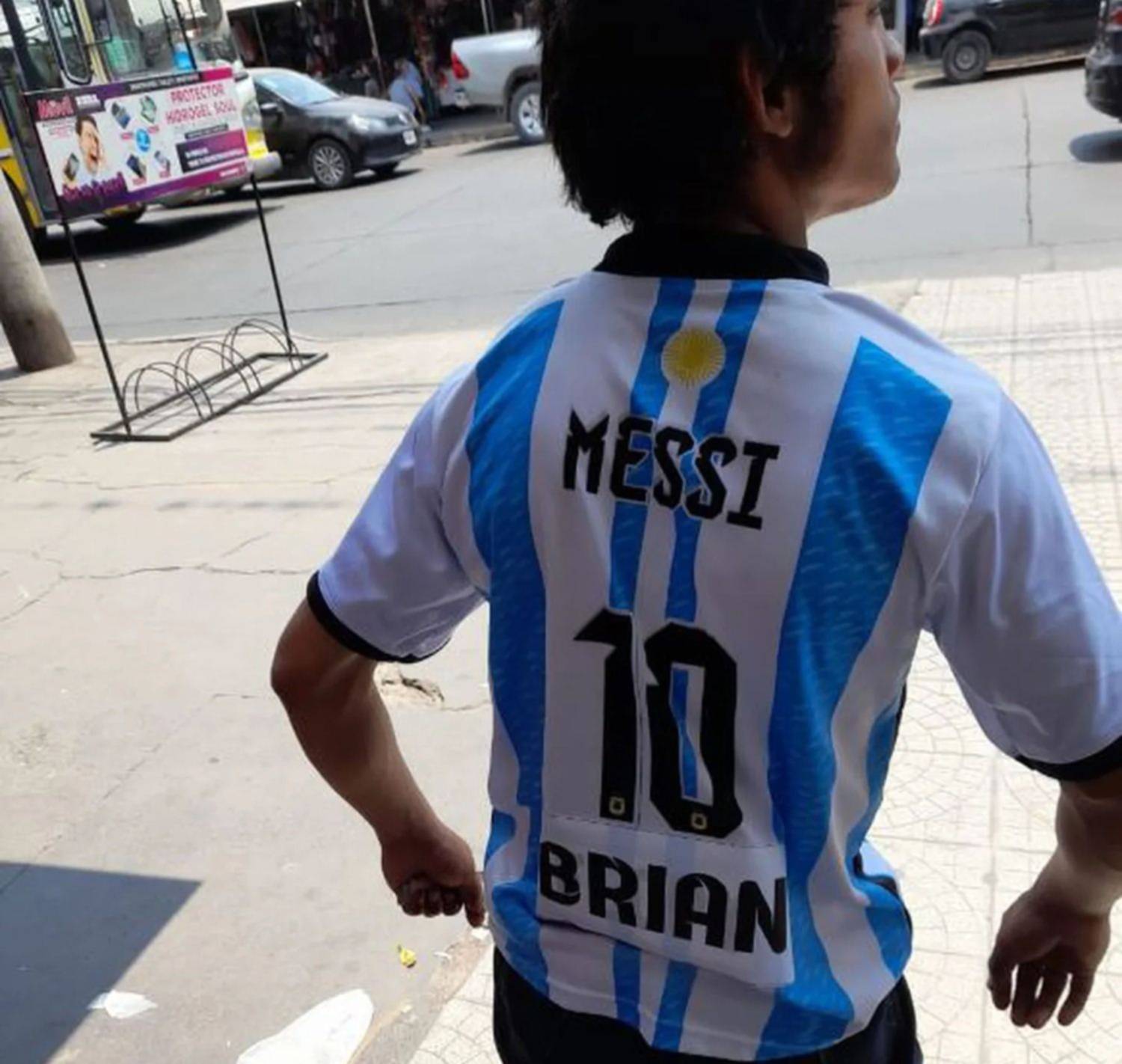 La camiseta que le regalaron a Brian tenía debajo del número 10 el nombre Flopy, por eso la mujer le pidió que fuera a la tarde que se la iba a cambiar por una que llevara su nombre. Y así fue, ahora el joven lleva la camiseta con su nombre y camina por las calles de Jujuy alentando con el corazón a la Selección.