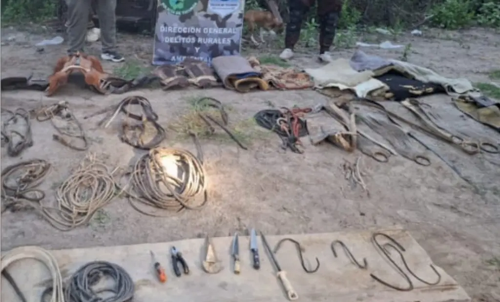 Durante los operativos, ordenados por la autoridad judicial competente, se incautaron aproximadamente 30 kilos de carne de cerdo, una motocicleta, un freezer y varios implementos de caballería, todos considerados parte de la investigación. Además, los efectivos encontraron cuchillos de carnicero y armas blancas de fabricación casera, que fueron incorporados como evidencia en la causa.