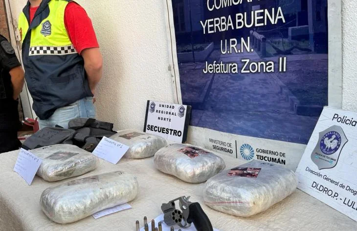 En una vivienda en Yerba Buena, propiedad de un hombre conocido como “Petiso David” que no se encontraba en la casa, los efectivos encontraron cinco envoltorios con marihuana que en total sumaban más de 5 kilos, además de un revólver calibre 38 con 12 cartuchos.
