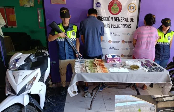 Como consecuencia del allanamiento y por orden de la UFINAR Capital , “también se procedió a la aprehensión del matrimonio que vivía en esta en este domicilio, con la sorpresa de que al recibir la planilla de antecedentes uno de los causantes, esta persona tenía un pedido de captura activo por causa de infracción a la Ley 23737”, agregó Castillo, quien señaló que también incautaron dos motocicletas y un automóvil que al parecer era usado para entregar los estupefacientes a modo reparto.