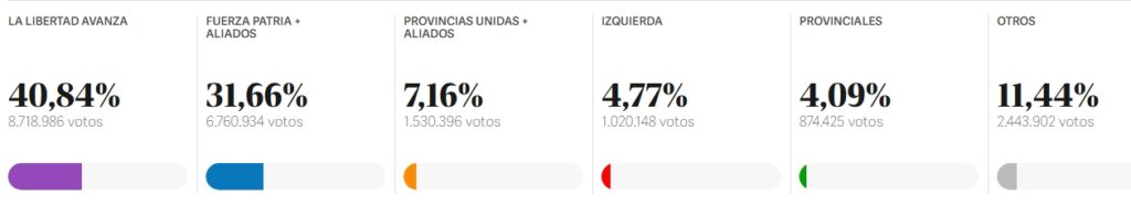 Para comprender la magnitud del triunfo de La Libertad Avanza, es necesario observar los resultados de manera desagregada, ya que las legislativas equivalen, en los hechos, a 24 comicios simultáneos, uno por cada provincia. Si se tiene en cuenta el contexto previo —un gobierno atravesado por denuncias de corrupción e incertidumbre económica—, los números obtenidos representan un importante respiro político y una recuperación de confianza para la gestión de Javier Milei.